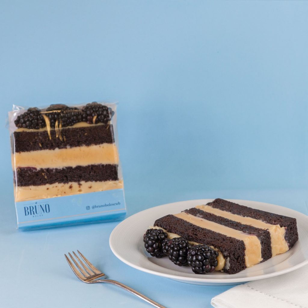 As Slices surgiram em outubro de 2020, quando estávamos prestes a mudar para o imóvel atual. Com a possibilidade de termos uma loja, eu queria um produto menor, individual, de valor mais acessível, para os clientes experimentarem e matarem a vontade e o desejo de comer sem precisar encomendar um bolo inteiro.